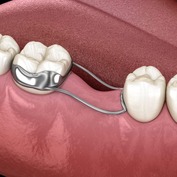 We use a Band and Loop Space Maintainer because it is a simple yet highly effective device used to preserve space in a child’s mouth after a primary tooth has been lost prematurely. This appliance prevents neighboring teeth from shifting into the open space, ensuring that there is enough room for the permanent tooth to erupt correctly. Custom-made to fit comfortably, the Band and Loop Space Maintainer is both durable and easy to care for, making it an ideal solution for maintaining proper alignment and preventing future orthodontic issues.