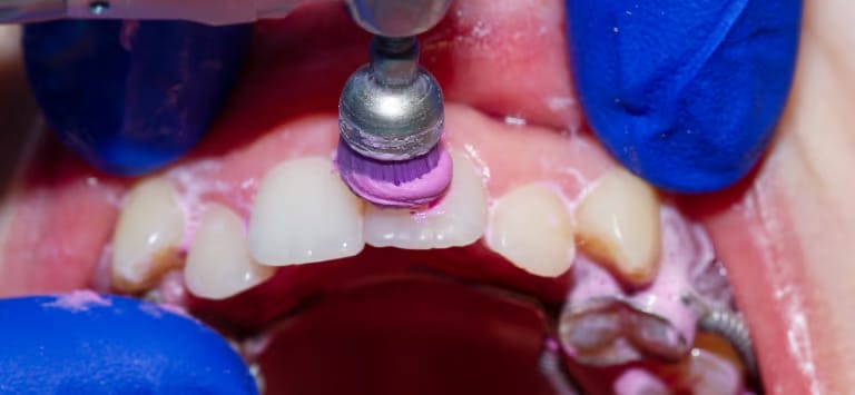 Before placing the braces, we will thoroughly clean and dry your teeth and then we'll apply a conditioning solution to help the brackets adhere to the teeth.